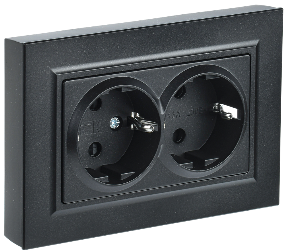 BRITE Розетка 2-местная с заземлением без защитных шторок 16А в сборе РС12-3-БрЧ черный IEK