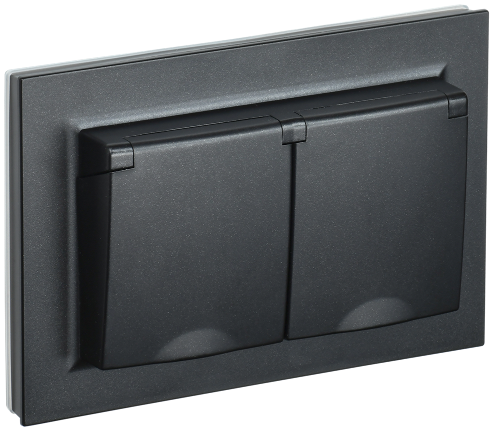 BRITE Розетка 2-местная с заземлением с защитными шторками и крышкой 16А в сборе IP44 РСбш12-3-44-БрЧ черный IEK