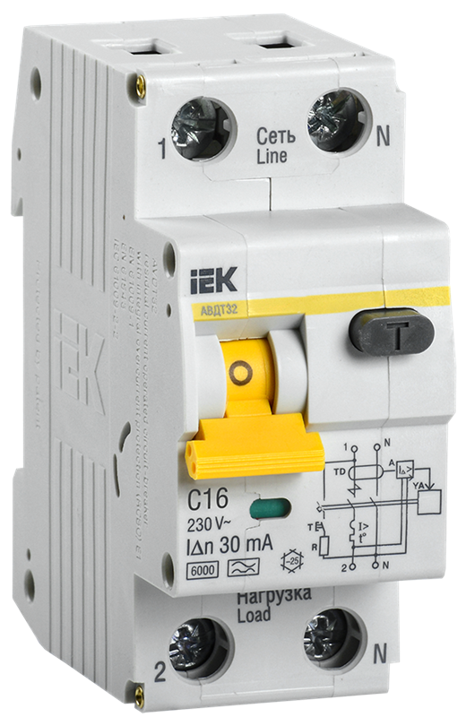 Дифференциальный автомат IEK АВДТ32 ИЭК предназначены для защиты человека от поражения электрическим током при повреждении изоляции электроустановок, для предотвращения пожаров вследствие протекания токов утечки на землю для защиты от перегрузки и короткого замыкания. Рекомендуется для защиты групповых линий, питающих розетки наружной установки, розеток и освещения подвалов и гаражей.