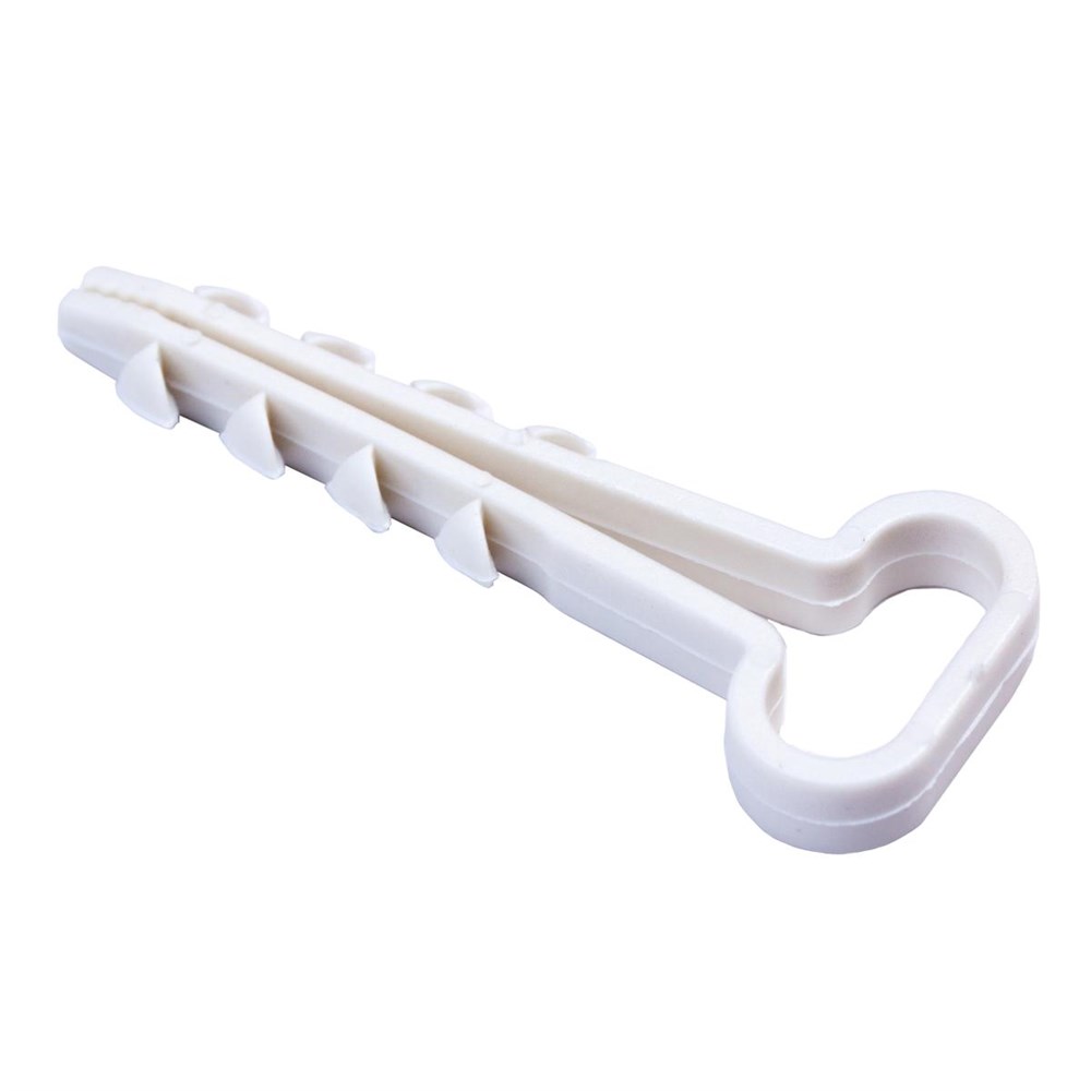 Дюбель-хомут ДХК-25 предназначен для быстрого и надежного крепления круглых кабелей диаметром от 19мм до 25мм к бетонным, кирпичным, гипсокартонным стенам, к полу, потолку, ГКЛ, к пенобетонным блокам и другим поверхностям. Дюбель-держатель вкручивается плотно в отверстие, обеспечивая надежную фиксацию кабеля, подходит для крепления проводки как внутри, так и снаружи помещений. Используется зажим как в бытовых целях, так и в промышленных. Дюбеля-хомуты позволяют крепить вдоль стен, потолка не только проводку, СИП, но и гофрированные трубы, жесткие гладкие трубы, легкие тонкие сантехнические трубы, теплоизоляционные провода, поливочные шланги и др. Дюбель хомут обеспечит легкий и быстрый монтаж, а также надежное и прочное крепление проводов без использования дюбелей, саморезов и шурупов. Для этого в стене необходимо рассверливать отверстие диаметром 6 мм и установить в него хомут-стяжку, вместе с захваченным в петлю проводом. Двойная крепежная распорная система в виде елочки или двухлапковый зубчатый хвост держит кабель намертво, что позволяет провести даже длинные провода для видеокамер и электропроводки с улицы по дому, монтаж замок-стяжки проходит быстро и надёжно. Хомуты-клипсы выполнены из нейлона белого цвета, габаритные размеры – высота 6,2 см, ширина кольца 19 - 25 мм, упакованы в плотный полиэтиленовый пакет, количество дюбелей-хомутов в 1 упаковке – 100 (сто) штук, производство Россия, производитель - ООО ТДМ. Если Вы ищете прочные и качественные хомуты (стяжки) для надежной фиксации проводки, сантехники, легкого трубопровода и теплоизоляции в доме, квартире, офисе, кладовой, магазине, подсобном помещении, в гараже, кабинете, на даче, то дюбель-хомут ДХК-25 от бренда TDM ELECTRIC - это идеальный крепеж для вашего выбора и, безусловно, необходимый инструмент для качественного ремонта.