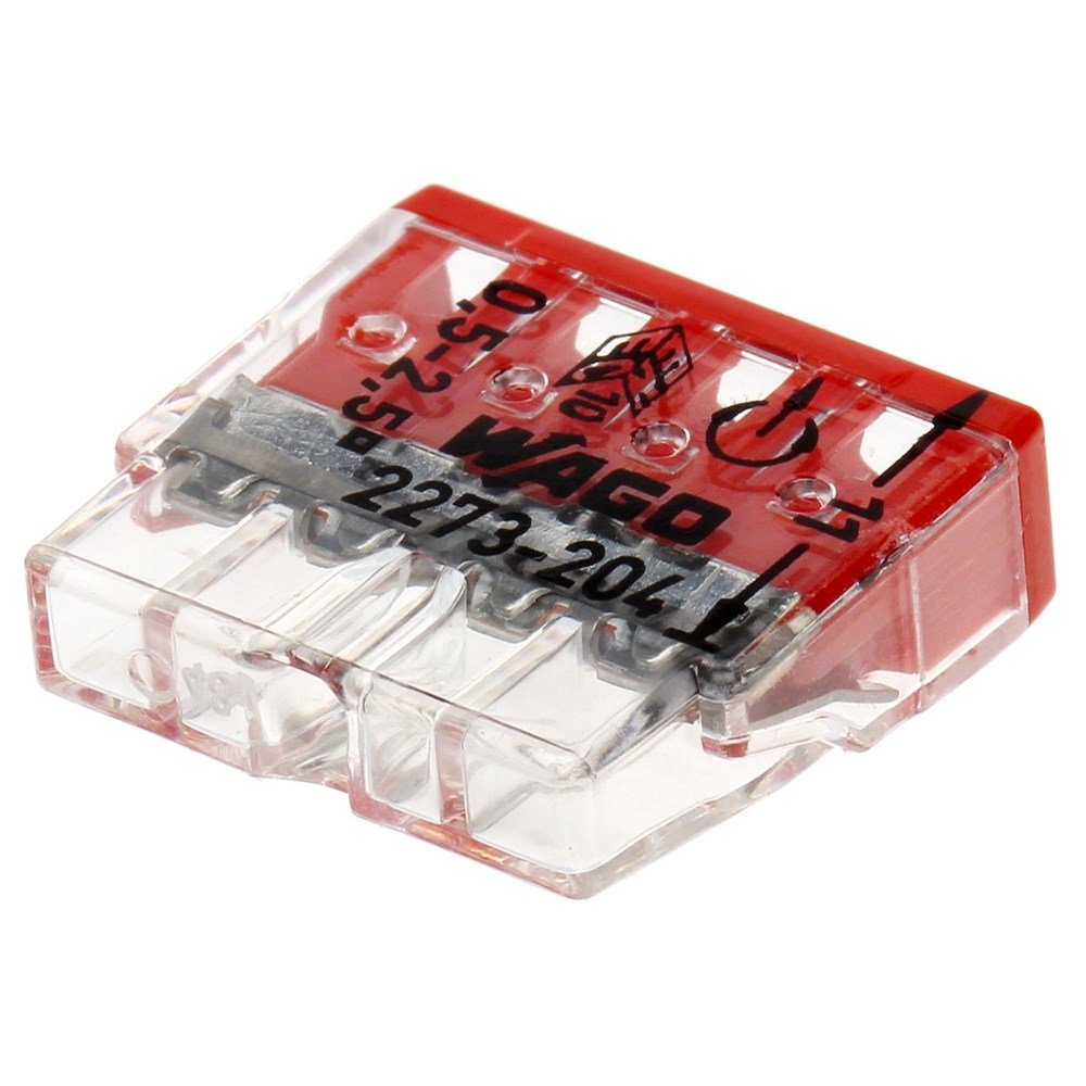Четырехпроводная клемма WAGO 2273-204 2567 обладает клеммным местом для каждого кабеля;