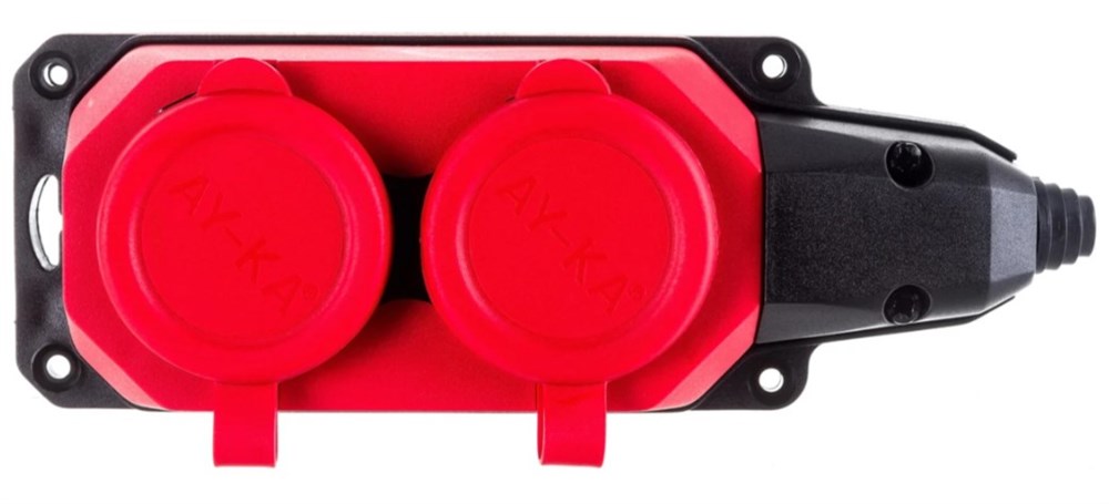 Колодка двухместная с заглушками каучук 16А AY-KA(КРАСНАЯ)