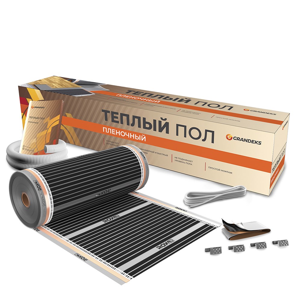Комплект нагревательного пленочного пола Grandeks 0220 - 1 м2 86 на основе карбоновой пленки устанавливается методом "сухого монтажа" под неклеевые напольные покрытия (линолеум, ламинат).