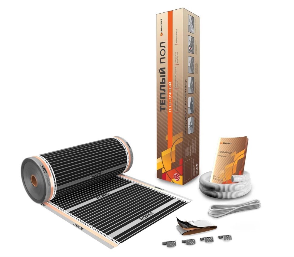 Комплект нагревательного пленочного пола Grandeks 0880 - 4 м2 90 на основе карбоновой пленки устанавливается методом "сухого монтажа" под неклеевые напольные покрытия (линолеум, ламинат).