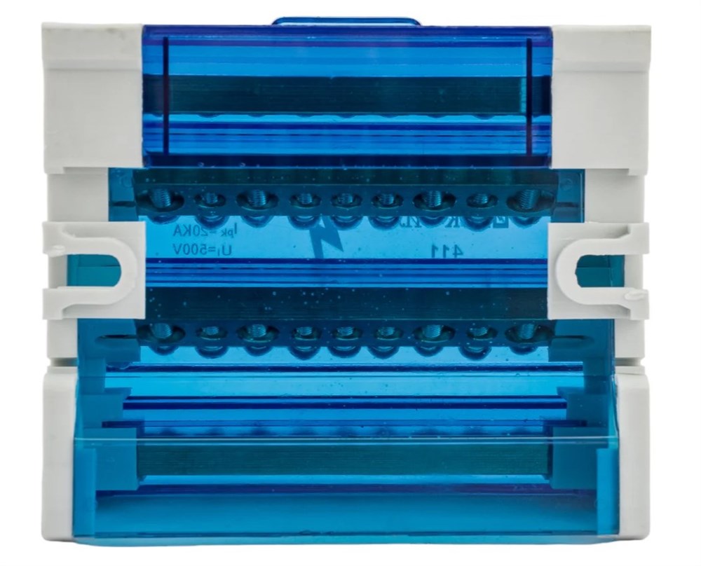 Кросс модули изготавливаются с двумя или четырьмя шинами, которые имеют отверстия различного диаметра и рассчитаны на токи до 100 и 125А. Шины закреплены в корпусе, который имеет возможность крепления на DIN-рейку 35мм или на монтажную панель щита с помощью двух винтов.
