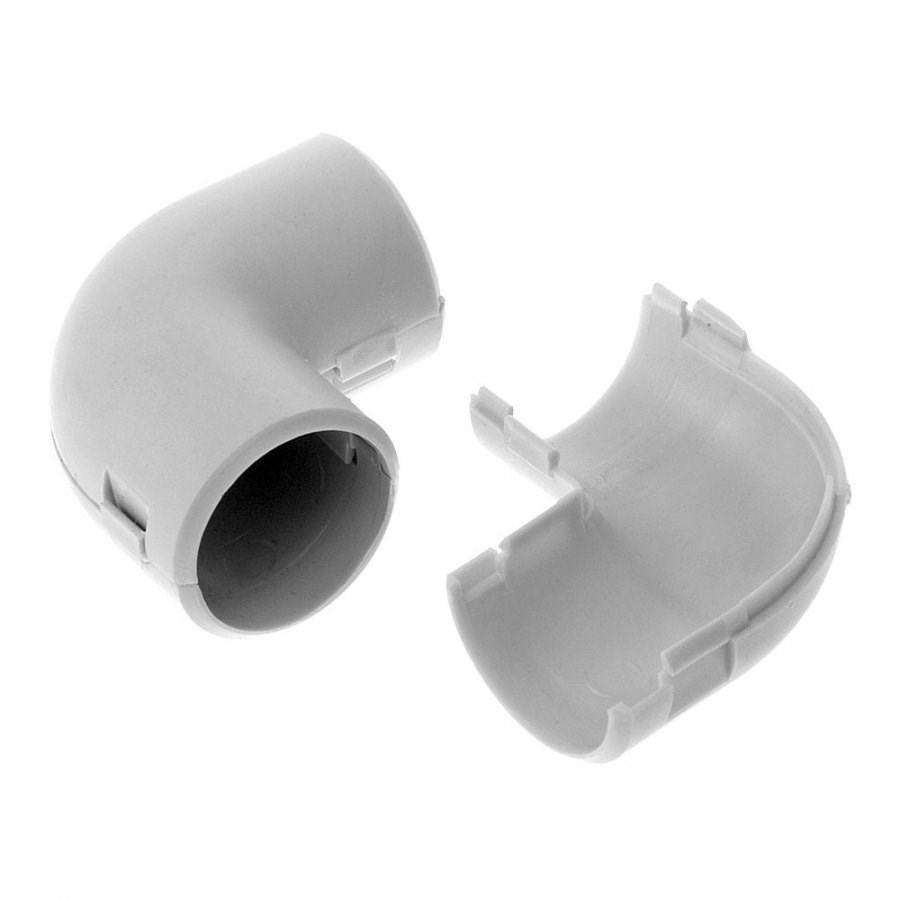 Предназначен для соединения гофрированных труб или гладких труб из пластика под углом 90 °С, что позволяет придать более эстетичный внешний вид местам соединения. Благодаря разъёмному корпусу, имеет возможность установки на уже смонтированную трассу.