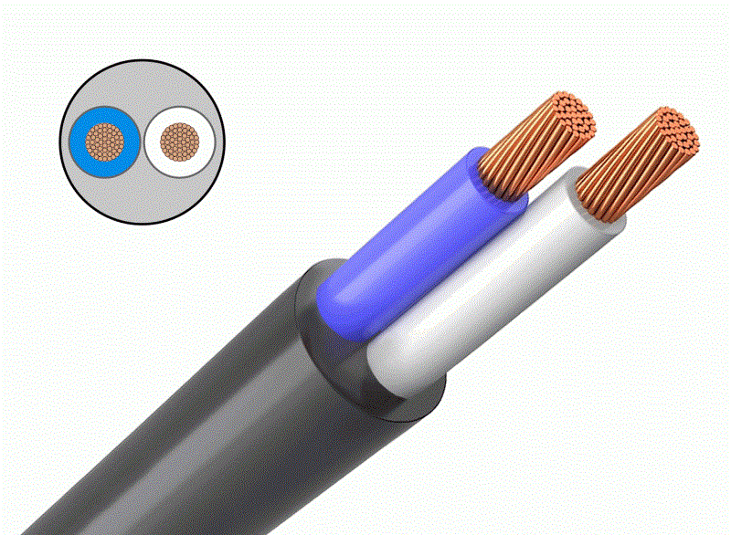 Описание провода ПВС 2х0,75 кв.мм (Dн=7,0 мм, Р=0,067 кг/м)
