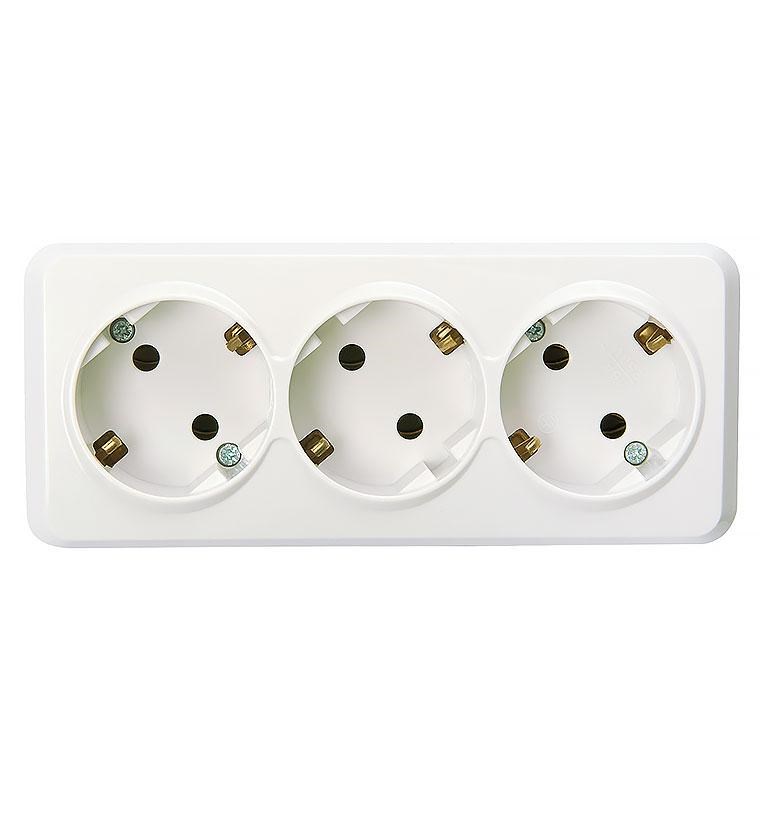 Розетка 3-местная 16А с заземлением белая Юпитер SBE-03w-16-S3-Z от бренда SMARTBUY предназначена для открытой установки. Имеет допустимую нагрузку по току 16А.