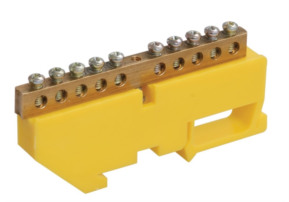 Шина PE земля ШНИ 6х9 на DIN-изоляторе 10-отверстий ШНИ-6х9-10-Д-Ж IEK