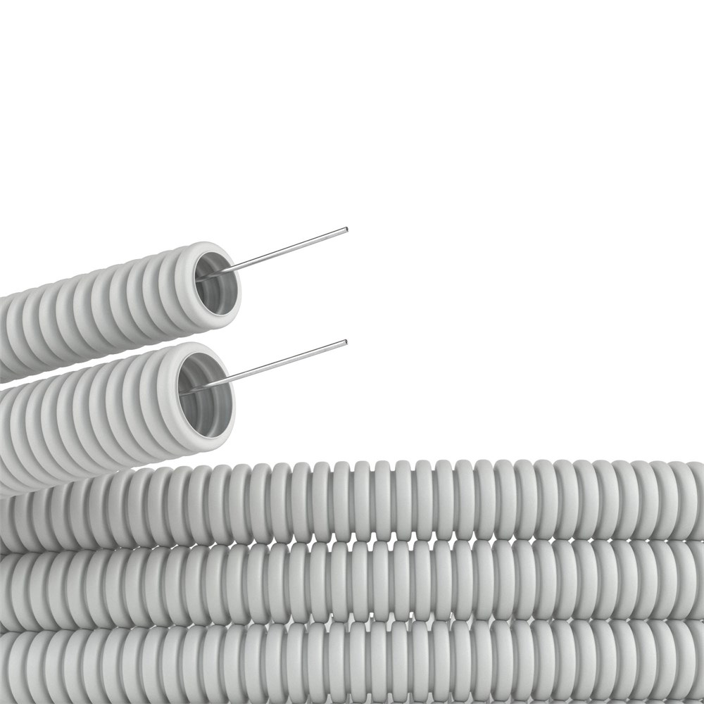 Труба гофрированная с зондом Ф25 50м (бухта) "Идеал", 002 Светло-серый