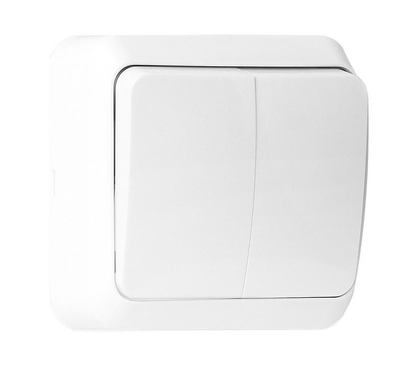 Выключатель 2-клавишный белый 10А ОП SmartBuy "Юпитер"