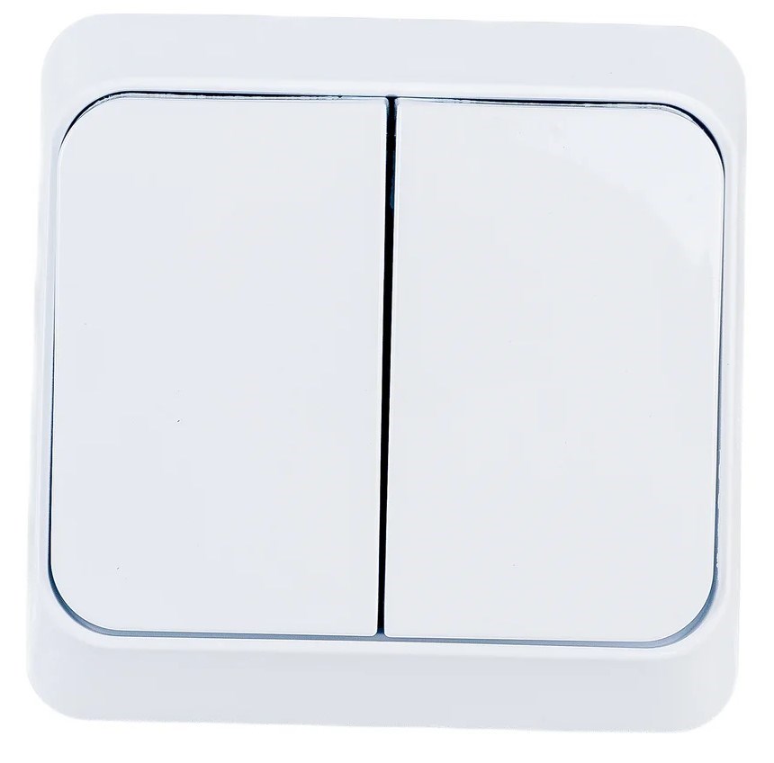 Выключатель накладной двухклавишный, предназначен для включения и выключения светильников, люстр и других источников света. Выключатель с открытой остановки выполнен из термостойкого, устойчивого к повреждениям ABS-пластика, легко очищается с помощью влажной салфетки, устойчива к царапинам. Вся продукция сертифицированная, обеспечивается гарантией производителя и безопасна в эксплуатации.