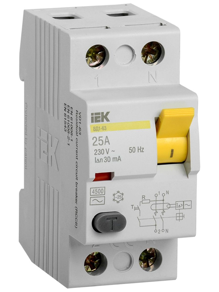 Выключатель дифференциальный ВД1-63(УЗО) 2Р 25А 30мА ИЭК